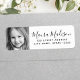Elegant return address labels featuring your custom photo and template fields for name and address. Name or family name in an elegant calligraphy script font. Make sure that the photo covers the bleed area if you are not using a square photo.