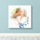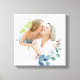 Wrapped photo canvas to personalize for any other occasion. The photo template is set up for you to add your picture, which is displayed in round shape. This elegant and simple design has a botanical photo frame with dusty blue and green watercolor eucalyptus leaves. If you have any difficulty with picture placement, you could try cropping your photo to a square before uploading.