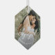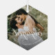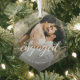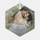 Custom Photo First Christmas Engaged White Script Glass Ornament