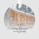 Commemorate your first Christmas in your new home with this beautiful modern keepsake ornament. The black text reads "First Christmas in our new home," with the words "new home" in elegant handwriting script with flourishes before and after. Replace the sample image with a photo of your new house and add your family's last name. A white gradient filter helps make the text pop.