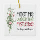 Celebrate your first Christmas together with this customizable ceramic ornament. Featuring modern typography that says, “Meet Me Under the Mistletoe for Hugs and Kisses,” in a festive red and green color palette, this ornament is designed to capture the joy of this special milestone. The front showcases an illustration of mistletoe with red berries, while the back includes the phrase, “First Christmas Together,” with space to add your own photo. Personalize it with your own text or sentiment to create a one-of-a-kind keepsake that will be cherished for years to come. Create a perfect gift for couples to hang on their Christmas tree as a lasting memory of their first holiday season together.