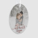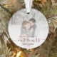 Commemorate the first Christmas of your marriage with this beautiful modern keepsake ornament. The dark red text reads "Our first Christmas as Mr & Mrs," with the words "Mr & Mrs" in elegant handwriting script with flourishes before and after. Replace the sample image with your favorite photo, and add your last name and the year. A white gradient filter helps make the text pop.