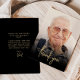 The front of this 90th birthday invitation features the guest of honor's photo with the words "thank you" in modern gold-colored handwriting script overlay. A dark screen helps make the text pop. Customize the reverse side with your personal message in gold-colored sans serif font and your name in script on a black background.