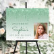 Welcome guests with this chic, glamorous 18th birthday party photo sign, featuring a sparkly green faux glitter drip border and green ombre background. Easily replace the sample image with a photo of the guest of honor. Personalize it with her name in green handwriting script, with the birthday and date below in sans serif font.