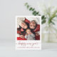Custom Photo Happy New Year Dark Red Script Holiday Postcard