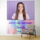 Personalize and add your own high quality photo of the birthday girl. The text: The name in purple with a modern hand lettered style script. Tempates for a name, and a date. Can be used as wall decor for the party or as a photo booth backdrop.
