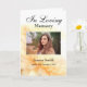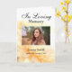 A beautiful photo framed "In Loving Memory" keepsake card with a golden floral background. A simple quote is printed inside, but you can change it with your own text, or delete it. Easy to replace template photo and change text color or size.