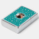 A Custom Photo in Pearl Circle on Cyan-Green background sprinkled with pearls. Perfect for gifts, accessories, and elegant everyday items.