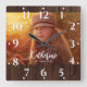 Custom Photo in Rustic Dark Brown Wood Board Square Wall Clock