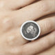 Keep your favorite face literally at your fingertips with this custom photo couples ring featuring your own picture set in a round bezel. The black-and-white image is accented by a tiny printed rose gold heart between your two initials at the bottom, creating a minimalist monogram that feels modern, sweet, and wearable every day. This personalized photo ring makes a thoughtful gift for anniversaries, Valentine’s Day, engagements, or long-distance relationships and is perfect as a promise ring or fun statement piece. Upload your photo, edit the initials, and design a unique keepsake that shows off your love story in a subtle, stylish way.