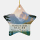 Commemorate a special event or gift a meaningful keepsake with this customizable ornament. Featuring a beautiful mountain and lake landscape, this ornament allows you to add names, date, and location in a stylish font overlay. Perfect as a wedding memento, holiday decoration, or gift, it captures the serenity of nature and the warmth of personal details, making it a cherished addition to any collection.