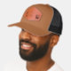 Custom Leather Patch Hat, Sytle: Adult Retro Trucker Cap, Color: Heather / Black, Shape: Circle
