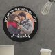 Custom photo clock - upload one of your favorite photos to create your own romantic and unique gift. The wording which frames your picture reads "let me be the reason you clock watch" in modern print and handwritten calligraphy. The design has a color palette of black and white.