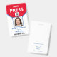 Customize the job title, your name and company name to your requirements. Easily upload your own photo and bar code. Custom press badge with company logo, photo ID and bar code. Reverse has 'If found return to" info. Custom Photo Logo and Bar Code ID Badge. This template photo and QR Code are for demonstration purposes only.