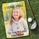 Personalized golf towel with your own photo. The photo template is set up for you to upload one of your favorite pictures of your child, partner, parent etc. The wording sits as a typography overlay on your photo and reads "I love you to the rough and back". A fun and unique golfer gift for mom, dad, husband for father's day, mother's day, Christmas or any special occasion.