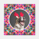Custom Photo Merry Christmas Modern Colorful Square Fridge Magnet Decoration. A festive, jolly and bright Christmas pattern picture magnet for decorating your home and office. Add your own photo of your pet or other family member to celebrate family memories. For budget friendly maximalist Christmas home decor presents. In traditional, warm Christmas colors of red, pink and orange, with winter green and blue. Makes a great, budget friendly keepsake gift for new cat or dog mums, mams or moms, new parents, grandparents, mothers, and for her in general. Joyful maximalism!