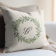 Custom Photo Monogram Pine Wreath Christmas gift Throw Pillow