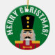 Custom photo nutcracker Christmas tree ornament. Cute toy soldier drawing with your image on the back. Personalized greeting on the front. Trendy decorations and gifts.