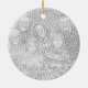 Lightweight, smooth, pure white ornament with nice sheen. Perfect size to be seen from across the room ... and to attract closer inspection! Price was great for ordering enough for the whole family! Clear, bold black design just as requested. Matches the order exactly. Just so nice!