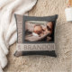 Unique, classic, cute and decorative cushion with a trendy gray background, taupe brown and ivory beige banners. With the option to customize or personalize with name, text and photo of your choice. This photo display makes a fun Father's or Mother's Day or birthday gift, or excellent keepsake for a new dad or mom!