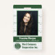 These photo ID badges have a forest-green-and-white theme. They include your employee's photo, name, and job title on the front, plus the name of the corporation / company and business logo. The back includes room for "if found" information (including address and phone number), plus space for an ID number and a bar code. The design also includes a grid pattern background and a line graph theme. Use the easy template to personalize, and then use the design tool to make more detailed changes (such as adjusting the size of the logo or barcode or deleting and rearranging elements). This eye-catching design is perfect for an office manager, administrative assistant, executive, or any business employee.