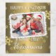 Unique, classic, trendy, pretty and decorative Holiday season wine label. Fun faux gold snowflakes pattern on shiny metallic looking background. With room to customize with photo of your choice, and personalize with your family name.