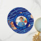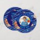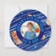 The front showcases a central circular photo placeholder to feature the birthday star, surrounded by bold, galactic-style typography. The back continues the cosmic theme with plenty of space for your personalized message of thanks to your fellow space explorers. This unique modern round shape makes it a memorable keepsake for friends and family.