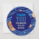 Launch your gratitude into orbit with this vibrant outer space thank you card! Featuring a cosmic background of swirling blue galaxies, distant stars, and detailed planets, this round card design is the perfect way to wrap up an astronaut-themed or solar system birthday party.