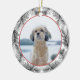 Add your photo and embrace the joy of the holiday season. This ornament features an unique Edelweiss wreath designed for your photo. Easily customize with your holiday greeting and your family name, and customize the message on the back. Ideas to include your family member names, and the year. Give a lovely heirloom to your friends and family.