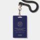 Enhance your corporate security with our Custom Photo QR Code Employee ID Badge. Featuring customizable employee photo, name, and title on the front, along with your logo, this badge exudes professionalism and functionality. The back offers space for you to upload a custom QR code and customize your company name and address, or personalized text, providing comprehensive identification for your staff. With a sleek navy blue background and golden classic typography, this badge offers a modern, minimalist design suitable for any business environment. Elevate your corporate branding and security measures with our customizable ID badge solution.