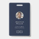 Enhance your corporate security with our Custom Photo QR Code Logo Employee ID Badge. Featuring a customizable employee photo, name, and title on the front, along with your logo, this badge exudes professionalism and functionality. The back offers space for a custom QR code, company name, and address, or personalized text, providing comprehensive identification for your staff. With a rich navy blue background and classic gray typography, this badge offers a modern, minimalist design suitable for any business environment. Elevate your corporate branding and security measures with our customizable ID badge solution.