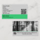 The Sophisticated Custom Photo QR-code Social Landscape Business Card template with green accents is part of the Gray Business Card Designs & Marketing Items Collection. Add your QR code details, name, profession, company, details and your social handle and #hashtag. On the back is space for a picture either decorative or service describing with your company logo and motto.