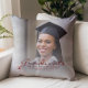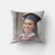 Modern graduation keepsake throw pillow featuring a custom photo. Easily replace the sample image with a photo of your graduate. The word "Graduate" appears in red handwriting script, with the name, school, and year of graduation below in sans serif font. A white gradient overlay helps make the text pop! The design appears on both sides of the pillow. Ideal for high school or college graduation.