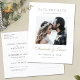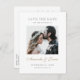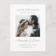 This simply chic photo wedding save the date postcard template features a clean, modern design. On the front, your first names are highlighted in a graceful, flowing script in an elegant hue called California Gold. We've chosen a simply classic look for "SAVE THE DATE' at the top. The font, called Caslon Openface, was designed at the dawn of the 20th century with roots in earlier letterforms, and became quite popular in the 40's because of its open look and accentuated right-hand strokes, which lend a sense of depth and dimension. This SAVE THE DATE part of the design, as well as your date and location at the bottom, are in a delicate shade of gray. You can change any of the text to suit your taste, including the color and font. This goes for the back as well, where you might want to delete a text field that you don't need, or change the color or font of some text. You can delete the lines for the addressee's details, for example, or delete the 'deliver to' part of the design, etc. if you prefer a more minimalist look. We've used black and gray for the text on back, and we've set the background color as transparent on both sides so that the color of the paper serves as the base color, for a simple, clean look. You can change this and choose a color for the base if you prefer. In any case, just please be sure to delete all of our sample details text on both sides as well as our sample photo! Add your favorite photo and your inspiration and make this simply chic postcard uniquely yours. We also offer a horizontal postcard version of this design, as well as flat card and magnetic card formats with vertical and horizontal orientation, along with a big selection of other simple, elegant wedding save the date cards and welcome posters. So please check our shop and our collections!