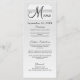 A beautiful wedding menu featuring the bride and groom's name, wedding date, and customizable menu items accented with hand-lettering,