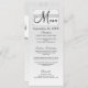 Custom Photo Simple Elegant Script Modern Wedding Menu design with a personalized single initial monogram or single initial and bride and groom names to create your own unique wedding logo. Add your wedding menu items on the front of the card. You can fully customize the color of the background, and the font style and add extra text on the back of the card. Just use the "customize it" option. The backside features your photo and space to add a custom note - or easily delete the photo and note. Simple and elegant with a rustic-chic feel - coordinates beautifully with so many of today's wedding styles.