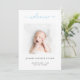 This simply charming custom photo birth announcement flat card features a contemporary design that lets you easily customize it to suit your style. We've picked standard sharp corners as the default shape setting, but you can easily change the look to rounded corners, as that look also works wonderfully with this design. So try both looks in editing mode and see which grabs you! We've given this minimalist design a splash of panache with "welcome' above the photo in a flowing modern font that manages to be both elegant and playful at the same time. We love the stylized, elongated flourish at both ends of the word that adds to its whimsical flair. To highlight this aspect of the design we've chosen a cheerful shade of baby blue for the 'welcome' script. But please feel free to change the color or to change the message to whatever strikes your fancy, be it 'introducing' or 'hello, world!', etc. If you'd like to highlight your gratitude for a gift and make this a thank you card, you can edit it to show 'thanks so much!' or 'thank you' or similar sentiments. And in any case, you can include your gratitude in a short message on the back. You can change the color and font of this or any other text according to your own taste. The default color for the name and details on the front is a slightly softened black, and the default color of the placeholder text on the back is a dark gray tone that's mostly black. If you prefer a more minimalist look, you can delete without replacing any of our sample stats on the front-you might not want to include the time of day or length, for example. We've set the background on both sides as transparent, to let the color of your paper simply serve as the base tone. You can change this on one or both sides by choosing a color instead. On back, we've added some placeholder text for you to replace with your own message. You can change the font as well as the text color. After you delete our placeholder text, you might decide to simply leave the back entirely blank, so that you can add a handwritten message with your signatures after you receive your cards. In any case, please do remember to remove all of the placeholder text as well as our sample photo! The default paper type, matte, has a soft warmth to it and resists smudging, so it's a great choice for writing your own message. Use the intuitive design tools, your favorite photo and your inspiration to personalize this custom birth announcement flat card and make it uniquely yours!