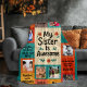Designed in a colorful crochet-inspired style, this blanket features heartwarming sister quotes and customizable photo patches where you can upload your own favorite memories.