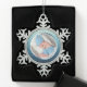 Custom Photo Snowflake Christmas Ornament. Cute photo Christmas holiday ornament with a winter blue frame template to place a newborn baby photo, family photo or kid photo in the image display area.