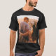 My 11 yo wore adult XL (5’7” 165#). The 8yo is small framed. She wore adult small and tied it in the back. Grandma wore adult large with long sleeve shirt underneath. Tall girl adult medium. Dark haired male adult large. Good quality dark Heather gray, Gildan brand shirt. -it was next up from basic choice and cost about $20 per shirt. Not too thick or thin. Washed and dried well, no major shrinkage. Not see-through. Can wear a bra under it fine. Screen print is just as shown and well done, front and back.
