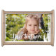 Custom Photo Text Pink White Paint Streaks Borders Serving Tray