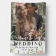 Customize a flag with your wedding photo framed by exotic wildflowers and a bird design. Add your unique typography in white.