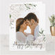 Choose your favorite photo to insert into this card and send your anniversary greetings to your significant other with this elegant custom photo white floral Happy Anniversary greeting card.