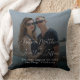 This modern wedding or engagement keepsake throw pillow features a photograph of the couple across the background which you can replace with your own custom photo. A black gradient extends from the bottom portion.