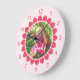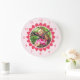 Clock design with personalized option of your own photograph inside peachy color hearts circle.