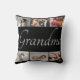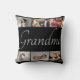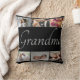 This stylish, keepsake throw pillow features a black background with the name "Grandma" printed in the center in an elegant light gray script text. Three sample photos are pictured above the Grandma title, and three are pictured below. You can personalize the images to include your own custom photos of the grandchildren and other family members. You can fit six photographs on either side of the pillow for a total of twelve. It makes the perfect birthday or Mother's Day gift for Grandma, or just a thoughtful gift to let her know how much she's cared for.