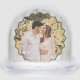 Easily add two photos (one front, one back) to this rustic snow globe design. The simple design features your photos inside geometric shapes, bordered in gray on a wood grain background. Celebrate your wedding, anniversary or other occasion with this pretty design.