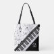 Custom Piano Music Notes Monogram Black White Tote Bag