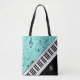 Custom Piano Music Notes Script Name Black Mint Tote Bag
