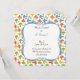 This is easy to customize invitation is perfect for a garden party, picnic or an event of your choosing. The background and back of this flat panel square shaped card is illustrated with bright colored mushrooms or toadstools in sunny warm shades of blue, spring green, orange, and yellow. Use the handy fill in the blank template to easily customize this card with your party or event's information.